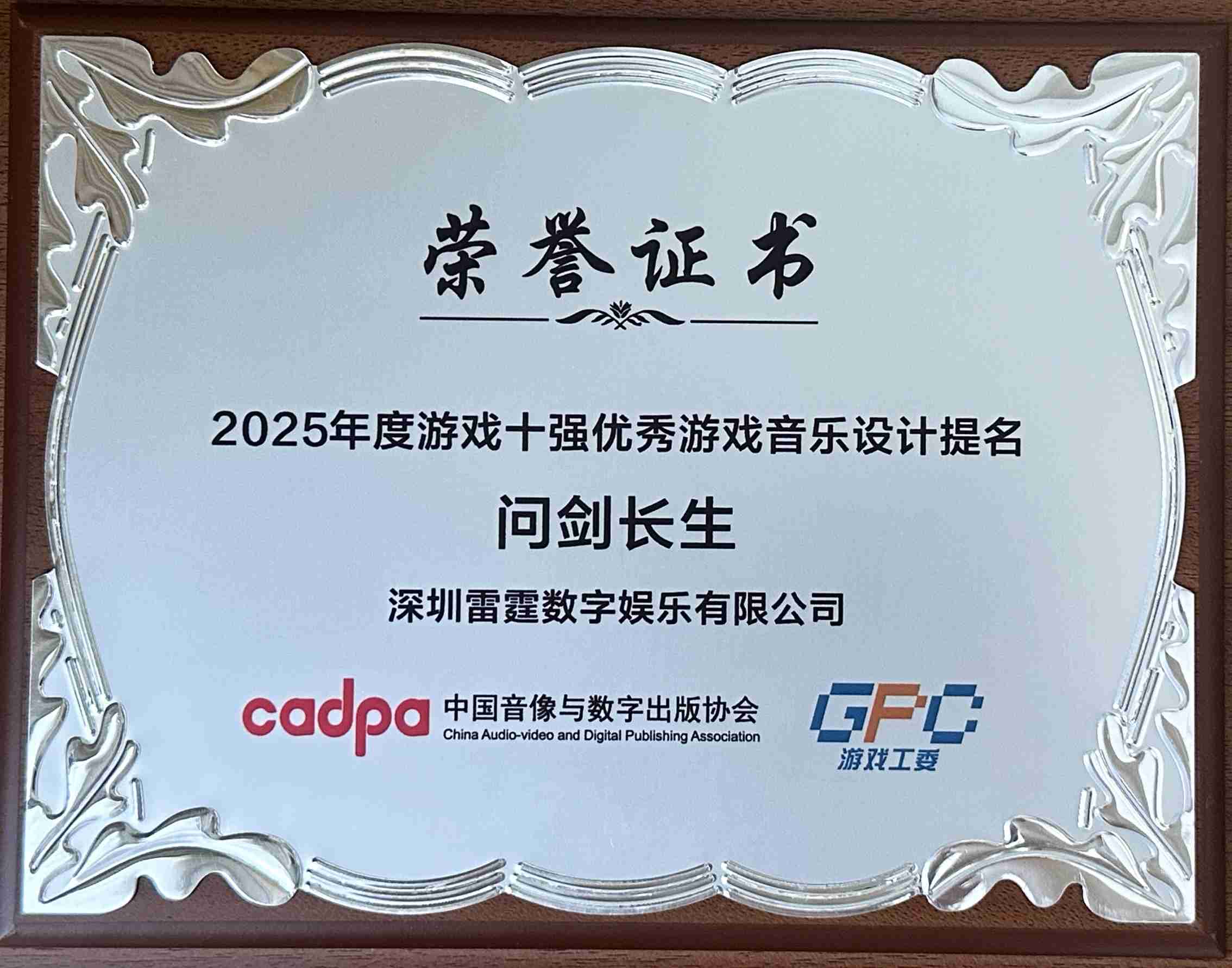 公司坚持走精品化道路,,,打造与时代精神相契合、、与海内外大众诉求相契合、、、与创作实践相契合的游戏产品,,,,倡导构建具有中华文化特色、、、、弘扬中华美学精神的产品理念,,切实提升游戏文化内涵的传播力影响力。。。。如此次荣获“2025游戏十强年度优秀游戏音乐设计”提名奖的公司自研产品《问剑长生》以音筑境,,,以乐传情,,,,其音乐融合东方传统韵味与现代审美,,,构建独特听觉世界,,,,运用古筝、、、、笛子、、箜篌等传统乐器与现代管弦乐,,塑造灵动古风仙侠氛围。。