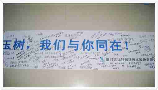 在募捐现场,,,赏金大对决同学们怀着沉重的心情,,,将每一笔捐款投入募捐箱,,,并在现场设置的横幅上,,,,写上了对玉树人民的深情祝福。。。。满载赏金大对决祝福的横幅将和捐款一起抵达玉树,,希望谨以此微薄之意,,,为玉树人民带去赏金大对决的爱心与祝福,,希望吉祥、、幸福的阳光能早日驱散灾难的阴霾,,普照在玉树人民的身上,,鼓励他们坚强、、、勇敢与乐观。。。。