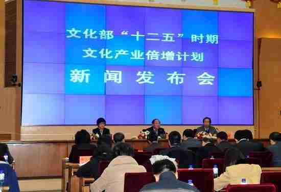 2月28日下午,,文化部在京召开新闻发布会,,,正式向社会发布《文化部“十二五”时期文化产业倍增计划》,,,提出了 “十二五”期间文化部门管理的文化产业增加值年平均现价增长速度高于20%,,,2015年比2010年至少翻一番,,,实现倍增的奋斗目标。。。